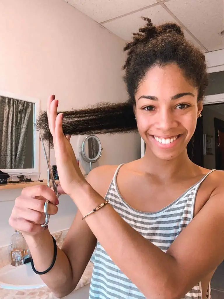But if you are staying on top of trimming your natural hair every 3 to 4 months, you will probably only have to trim about half an inch off each time.